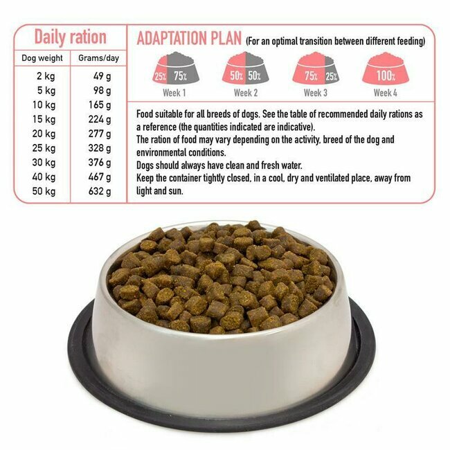 - Adaptées à toutes les races de chien de tous âges : Adulte et Senior sauf Chiot.