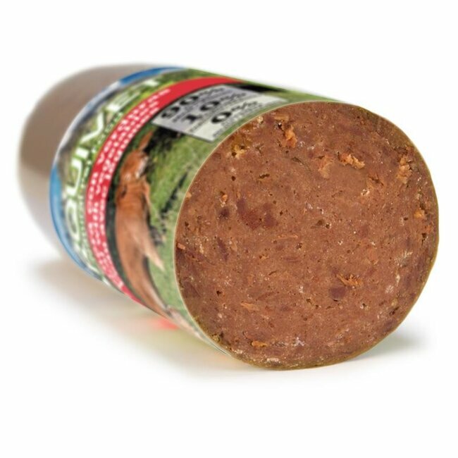 Aliment complet en forme de saucisse de veau aux légumes pour votre chien. Très appétissant pour toutes les races apportant de l'énergie et favorisant un métabolisme sain. Avec 90% de viande, ces saucisses sont sans céréales et sans gluten. Goût très savoureux et très pratique pour couper des parts pour les repas.