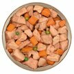 97% porc frais dans sa sauce, petits pois, carottes, patate douce, épices.