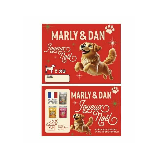 Coffret de Noël pour chien 3 snacks saumon Marly et Dan