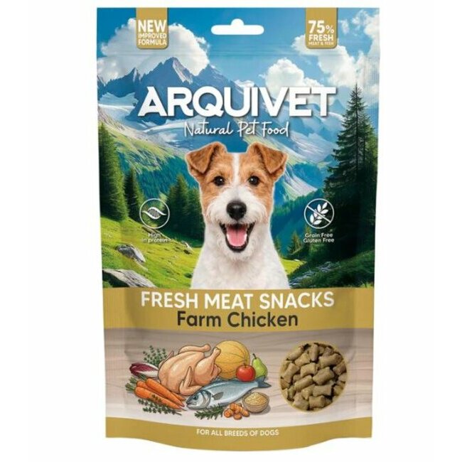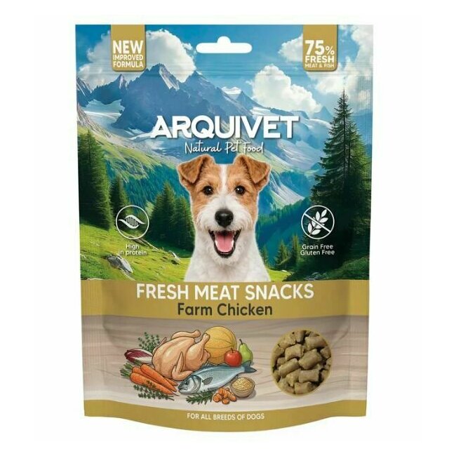 Snacks naturels semi-humides poulet fermier sans céréales pour chien Arquivet