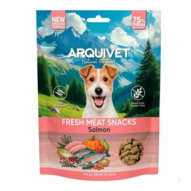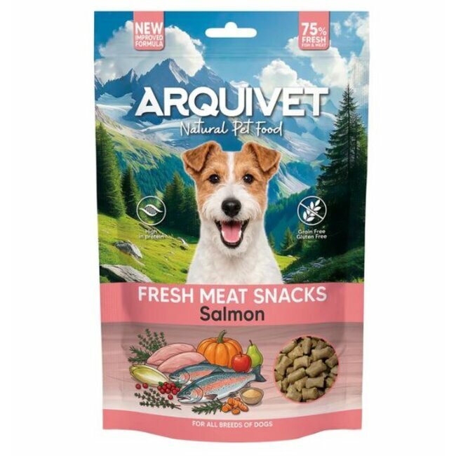 Snacks naturels semi-humides saumon frais sans céréales pour chien Arquivet