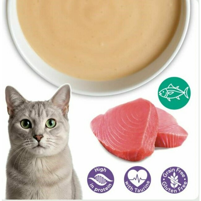 Crème de thon pour chats, élaborée avec des ingrédients naturels de haute qualité. Un aliment complémentaire, savoureux et nutritif, qui aide à maintenir une bonne hydratation, essentiel au bon fonctionnement des reins. Sans céréales et sans gluten. Un véritable délice que votre chat va adorer.