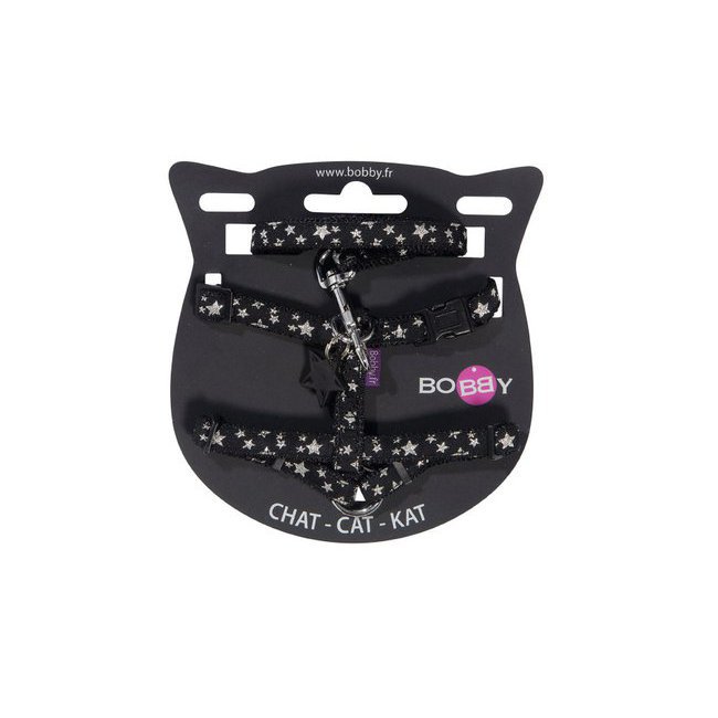 Harnais pour chat avec laisse noir Merry de chez Bobby