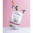 Croquettes pour chiot de toutes races sans céréales particulièrement ceux à la peau sensible. Préparé avec du saumon frais comme seule source de protéines animales, il apporte des quantités importantes d'oméga 3, EPA et DHA qui contribuent à la santé de la peau, du pelage et des articulations de votre chiot tout en le protégeant des allergies et des intolérances alimentaires. Cette délicieuse nourriture pour chien a été élaborée par des vétérinaires et contient des nutriments essentiels et des super-ingrédients comme la citrouille, le brocoli, et les myrtilles pour renforcer le système immunitaire. Les acides gras favorisent les capacité d'apprentissage et le calcium contribue au bon fonctionnement des os.